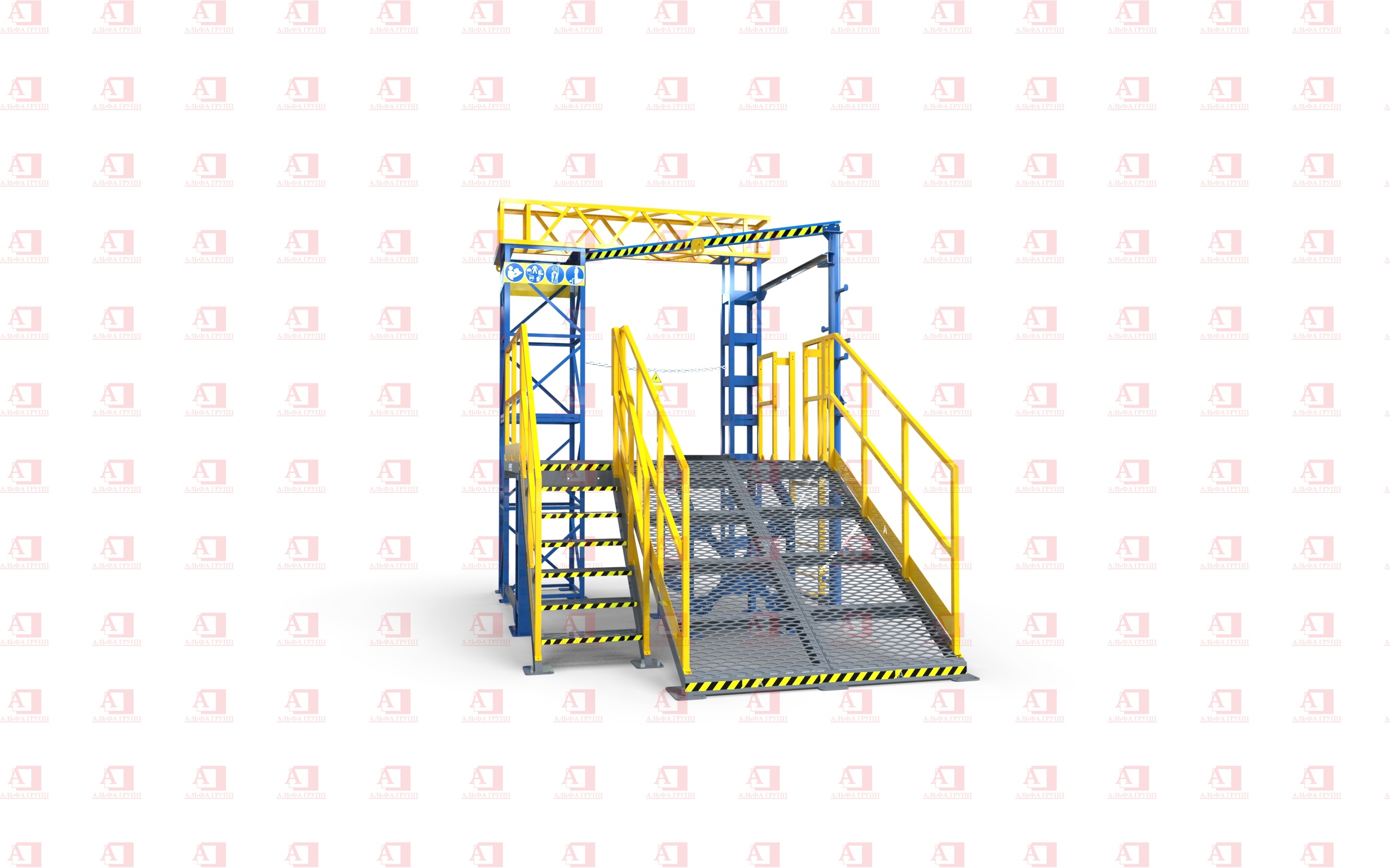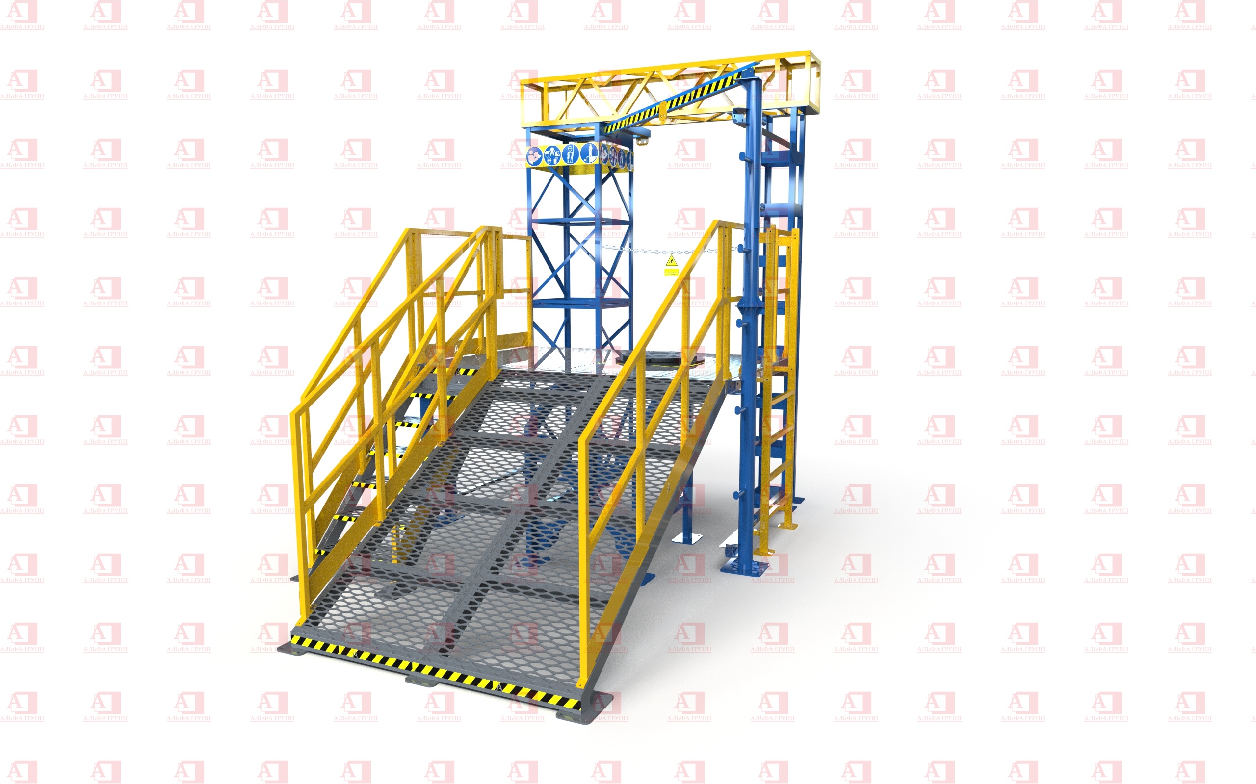 Доступ на рабочую площадку второго уровня осуществляется по стальной маршевой лестнице.