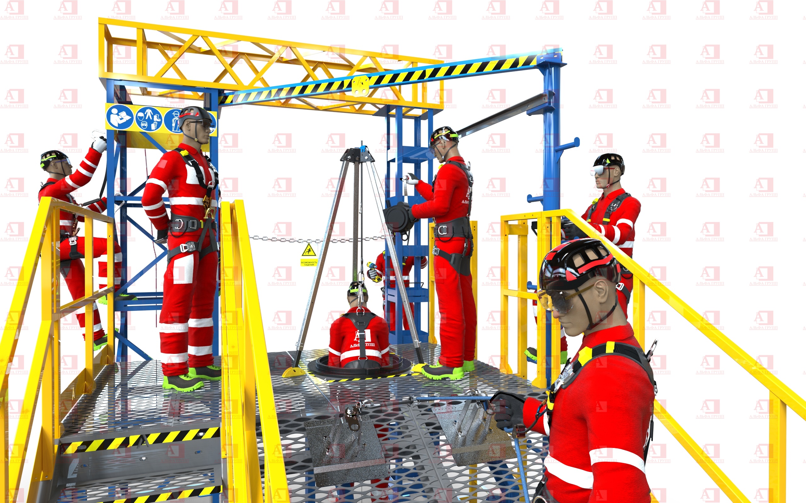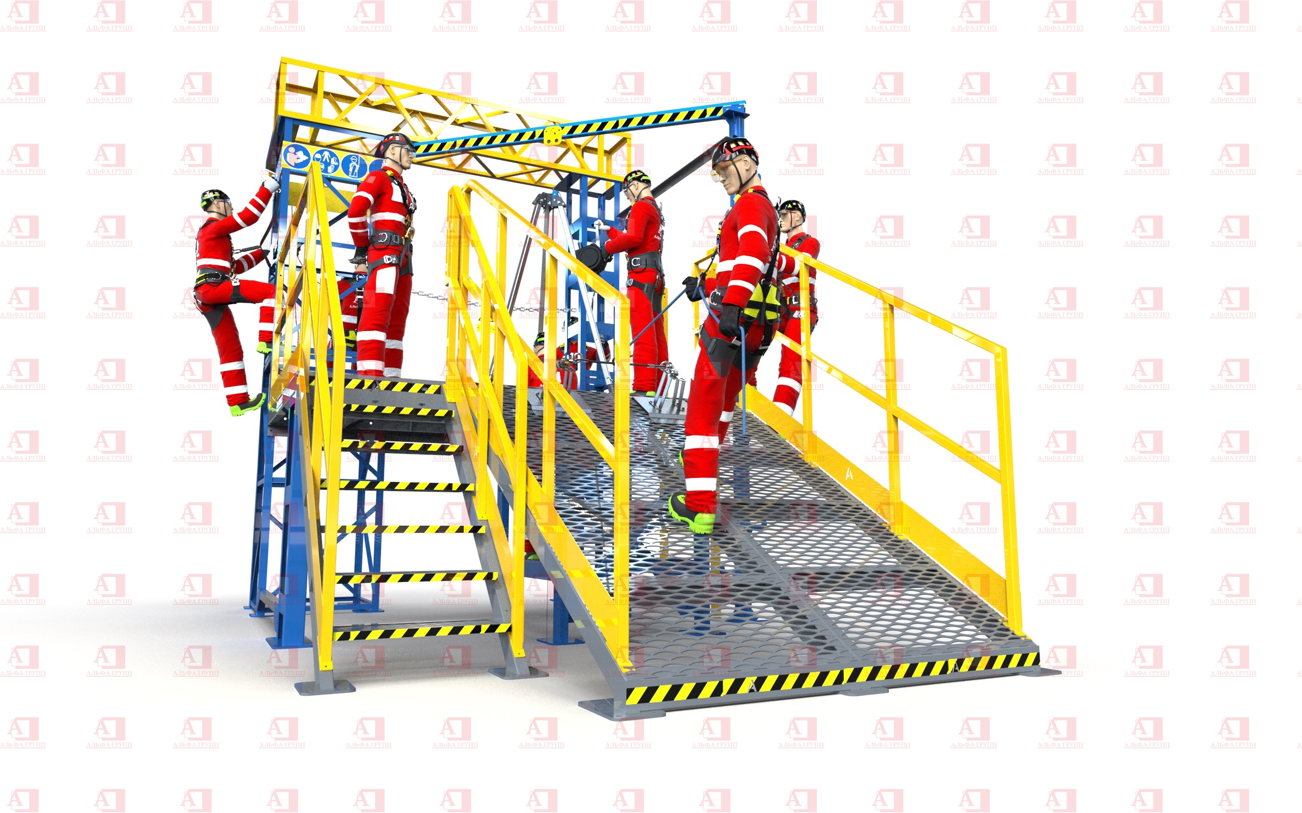 Для защиты от риска падения комплекс оснащен перилами и защитным ограждением высотой не менее 1100 мм.